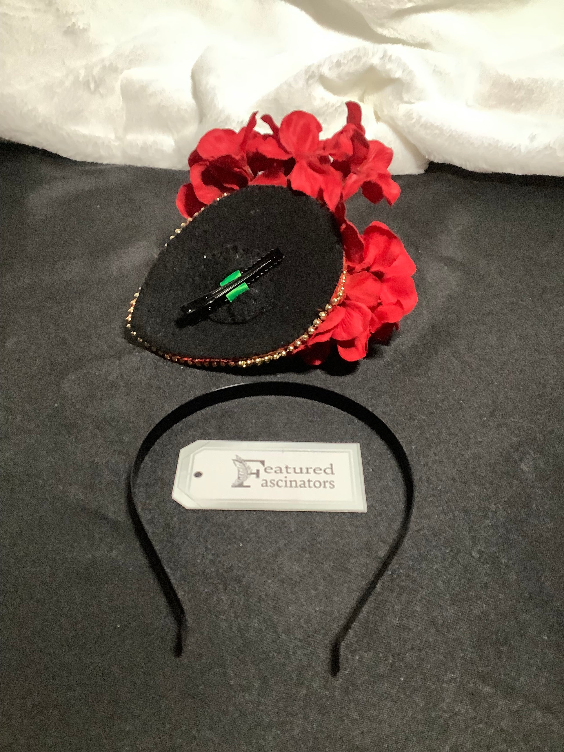 Attachment: Alligator clip and satin-covered headband included for dual styling options