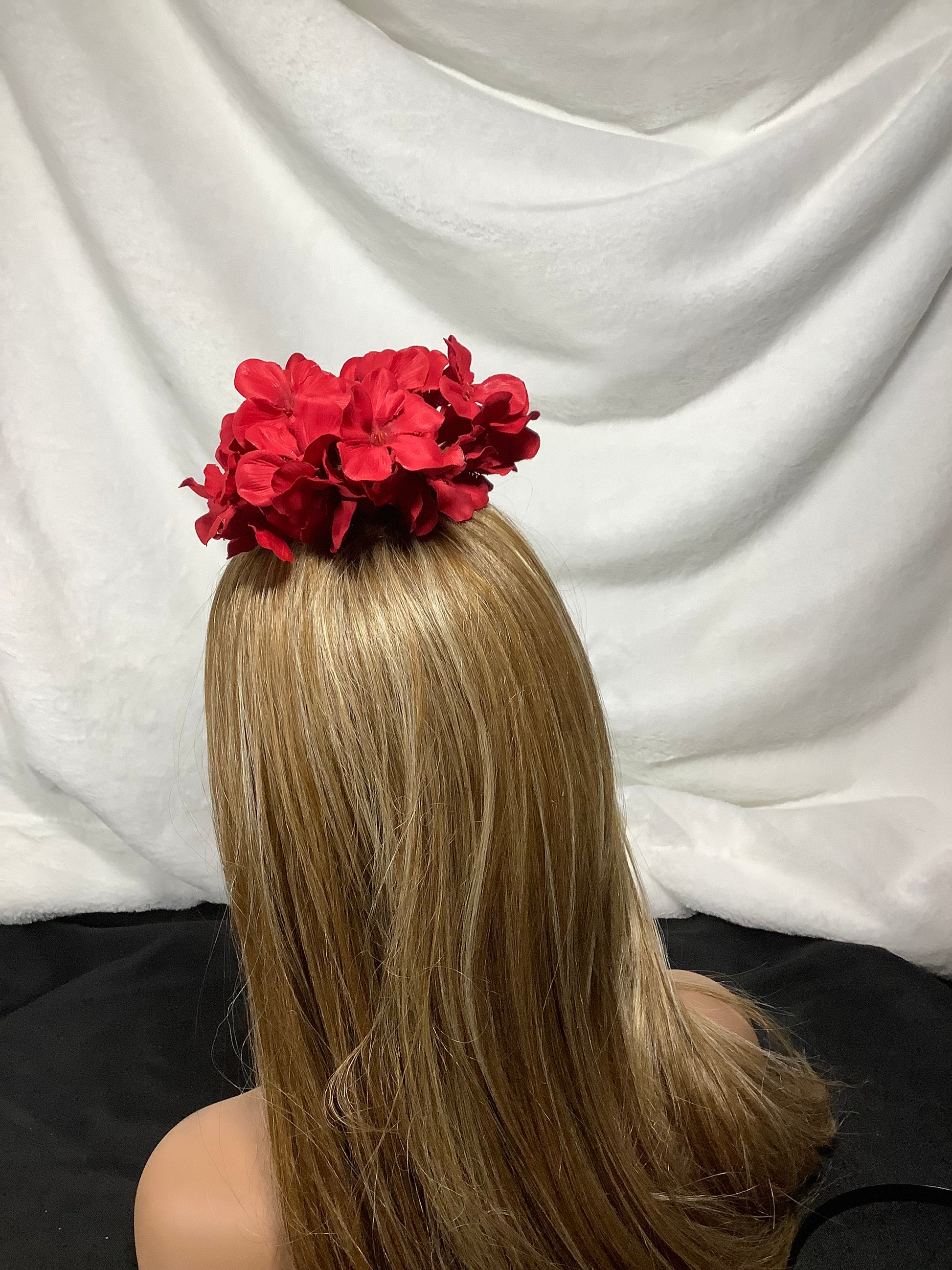 Radiate elegance and bold opulence with the Heart of Gold 2025, a statement fascinator that embodies both glamour and grace. Designed in a dazzling heart shape, this piece is encrusted with shimmering gold rhinestone mesh, symbolizing warmth, richness, and love. Crowned with lush clusters of red silk florals, it creates a stunning contrast between passion and prestige.